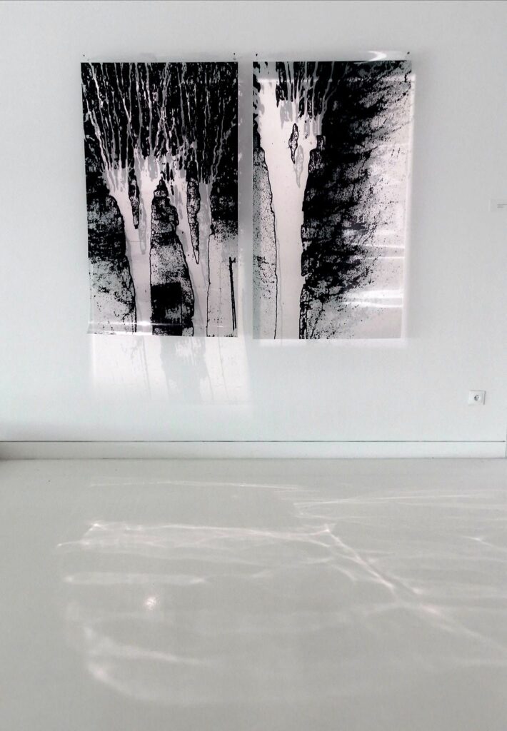 Le long du canal, les platanes et leurs reflets ont pris leur véritable autonomie. Ils font pour nous le lien entre le monde souterrain et le monde aérien, le corps et l ’esprit, ils nous parlent d ’éternité et de fugacité; le temps les habite.