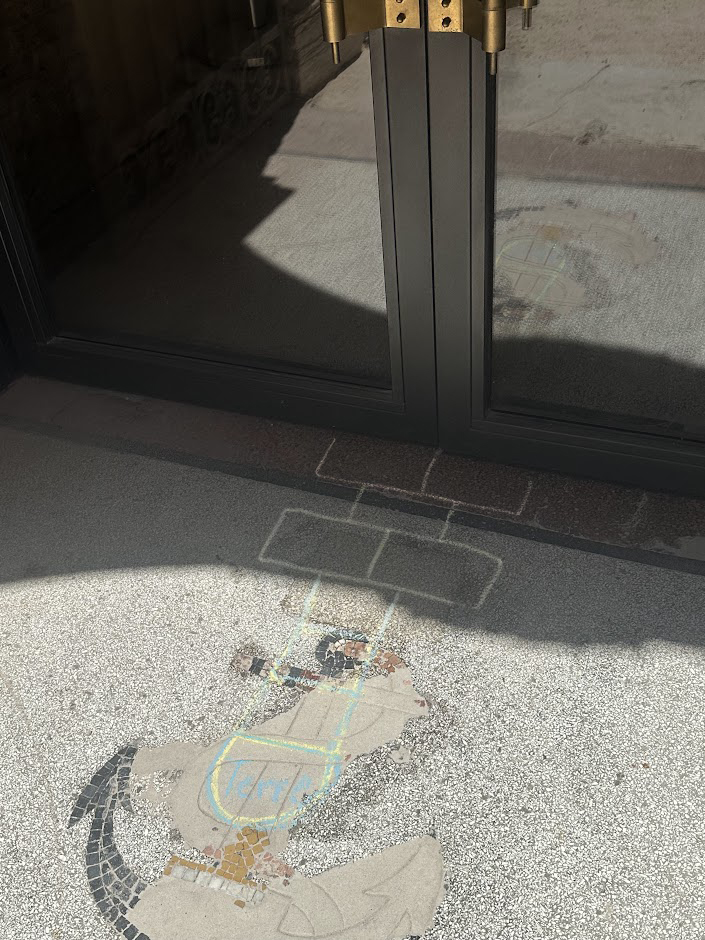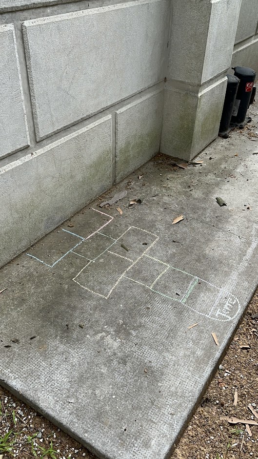 Une marelle, sans le ciel, sera tracée à la craie, adossée aux quatre pavillons.