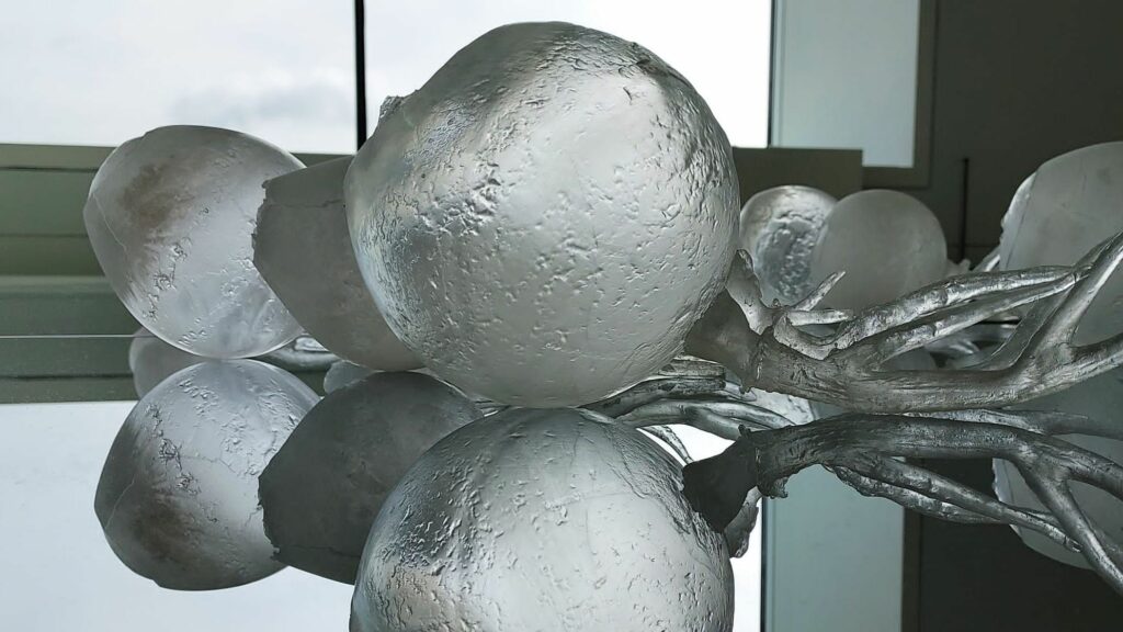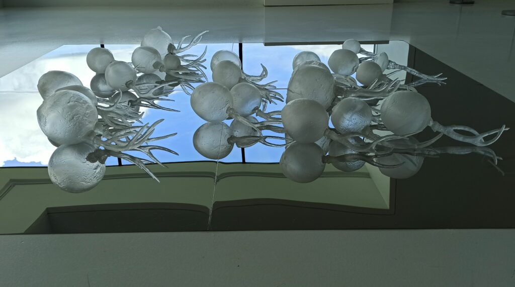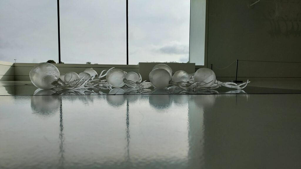 Les formes soufflées par les étudiants de la HEAR, découvrant le verre font écho aux déchets plastiques, pièces fabriquées puis jetées sans réelle conscience de leur devenir.