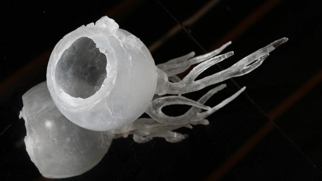 La pâte de verre et le soufflage, deux déclinaisons du même matériau, s’unissent dans un destin similaire.